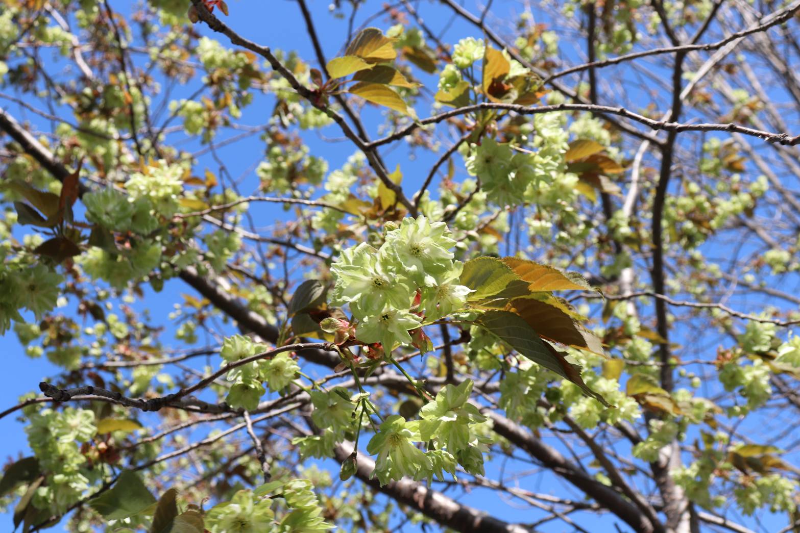 そこには、何と珍しい緑のサクラが・・・ 午後 4:58